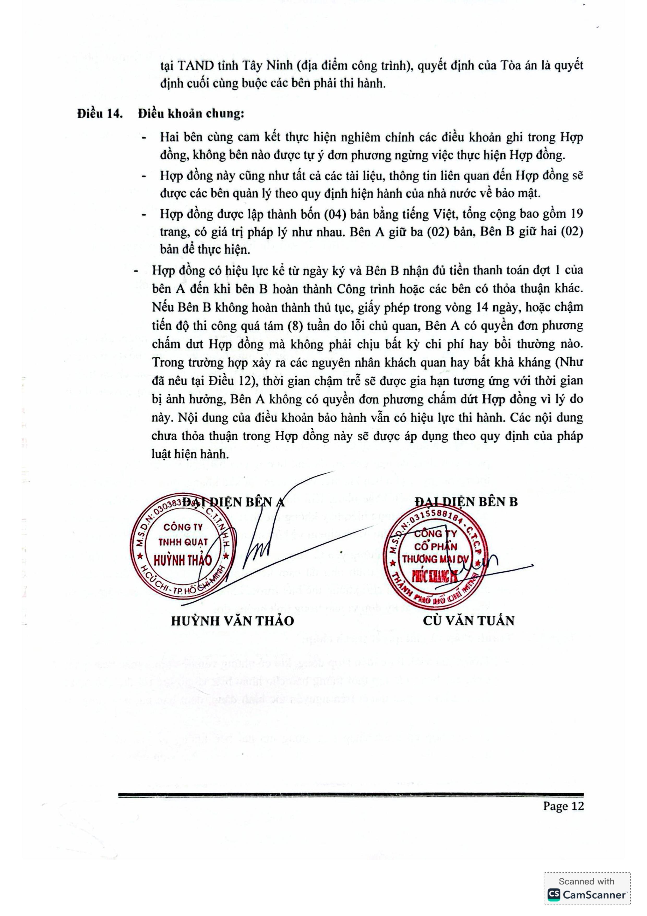 HỢP ĐỒNG HUỲNH THẢO